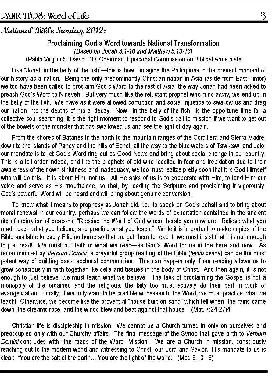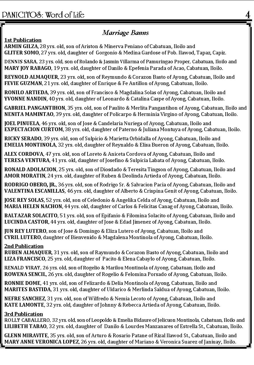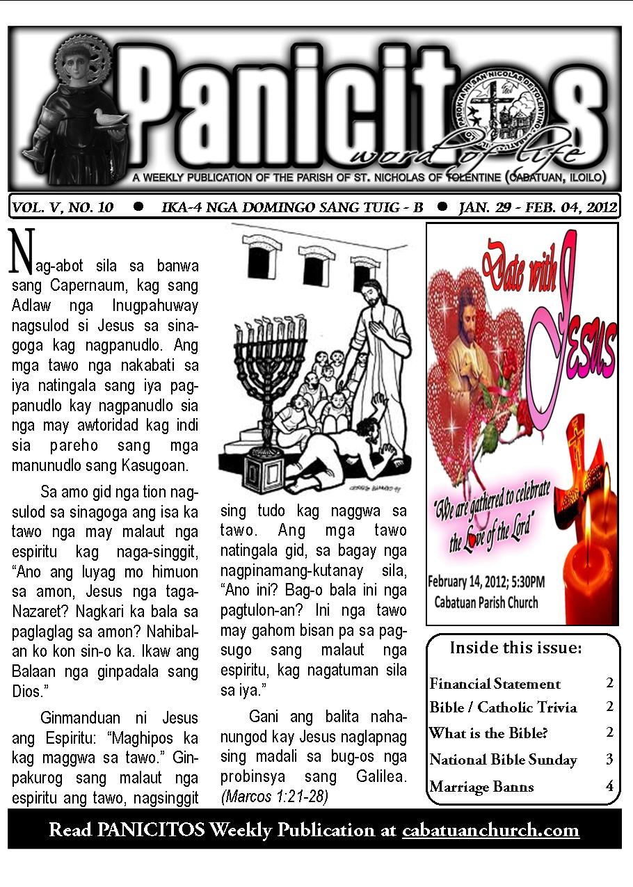A Weekly Publication of the Parish of San Nicolas de Tolentino, Cabatuan, Iloilo